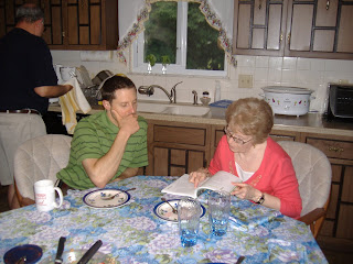 Haha blow up that last picture by clicking on it.  As you'll see, that's a picture frame that Jake is holding, with VERY entertaining face-in-hole pictures.  Too funny!